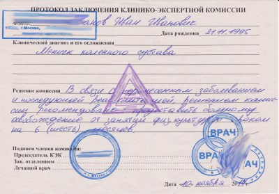 Предложение купить справку от физкультуры сегодня не вызывает шока, ведь для получения гарантированного отдыха от спортивных занятий в школе, колледже или институте нужно пойти к врачу, отстоять очередь и доказать наличие проблем со здоровьем. Если речь ведется о длительном освобождении, то здесь и вовсе ответ приходится держать перед экспертной комиссией, где качество обследований жесткое и обсуждению не подлежит.