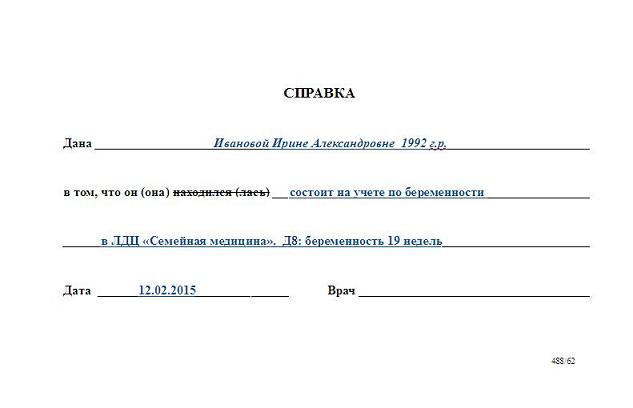 Обратите внимание: пациентка может получить любое количество справок в течение всего периода вынашивания плода.